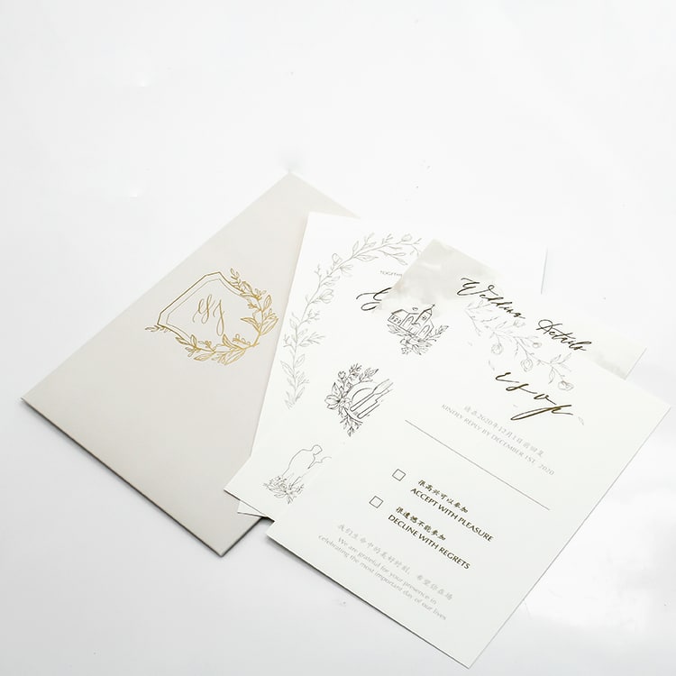 Custom Design Gold Foil Wedding Cards