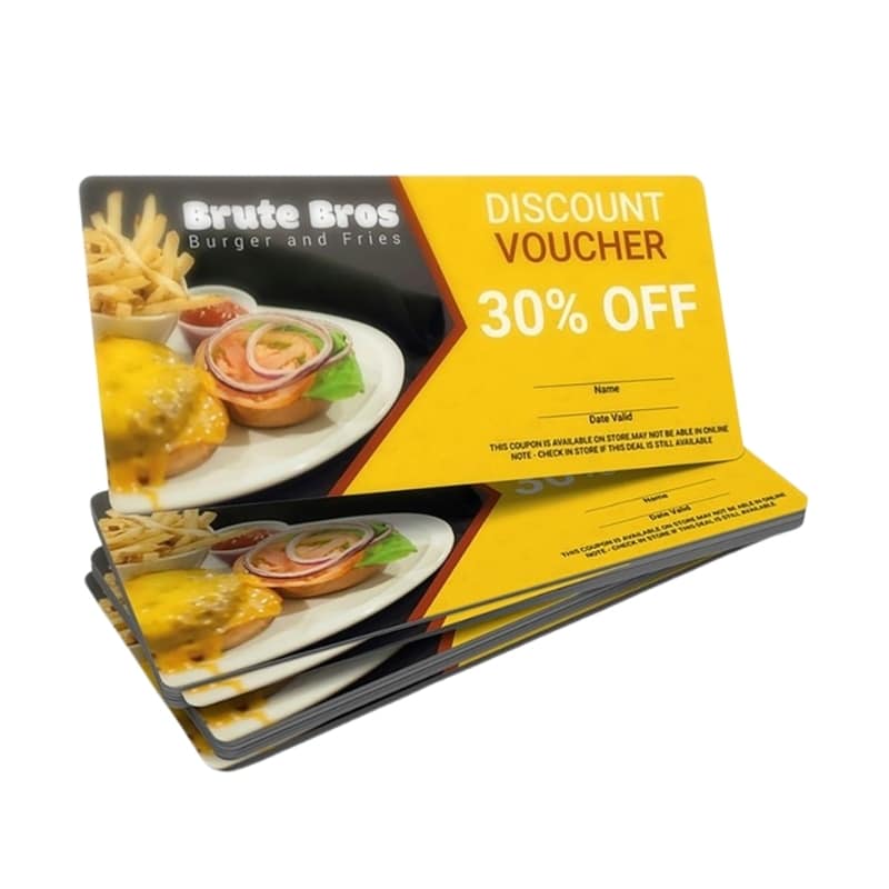 Choose from top-quality paper, PVC or plastic card stocks with smooth, linen or matte finishes.