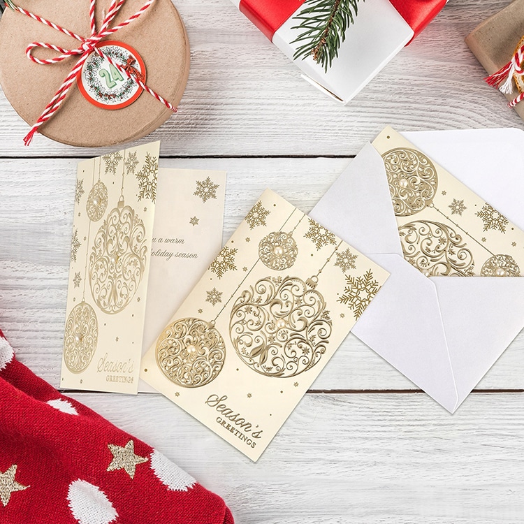Gold Foil Holiday Merry Christmas Boxed Greeting Cards