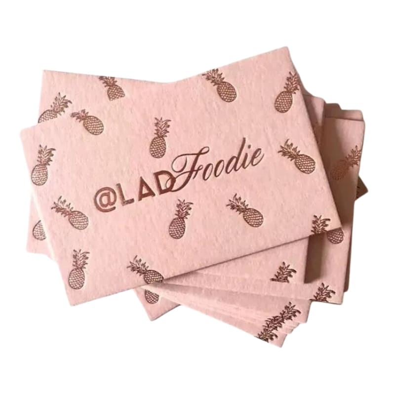 Pink Paper cardboard business cards with embossed logo