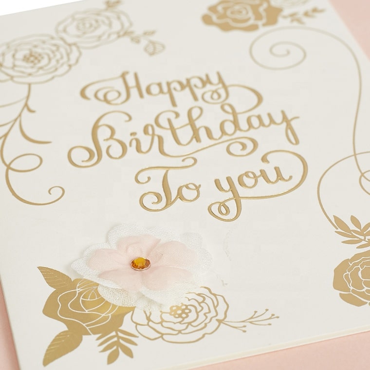 Printing Gold Foil Emboss Happy Birthday Greeting Cards